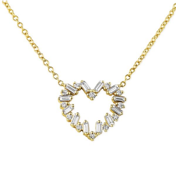 Baguette and Round Diamond Heart Shaped Necklace