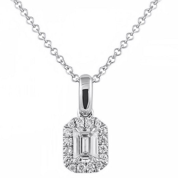 Petite Emerald Cut Diamond Halo Pendant