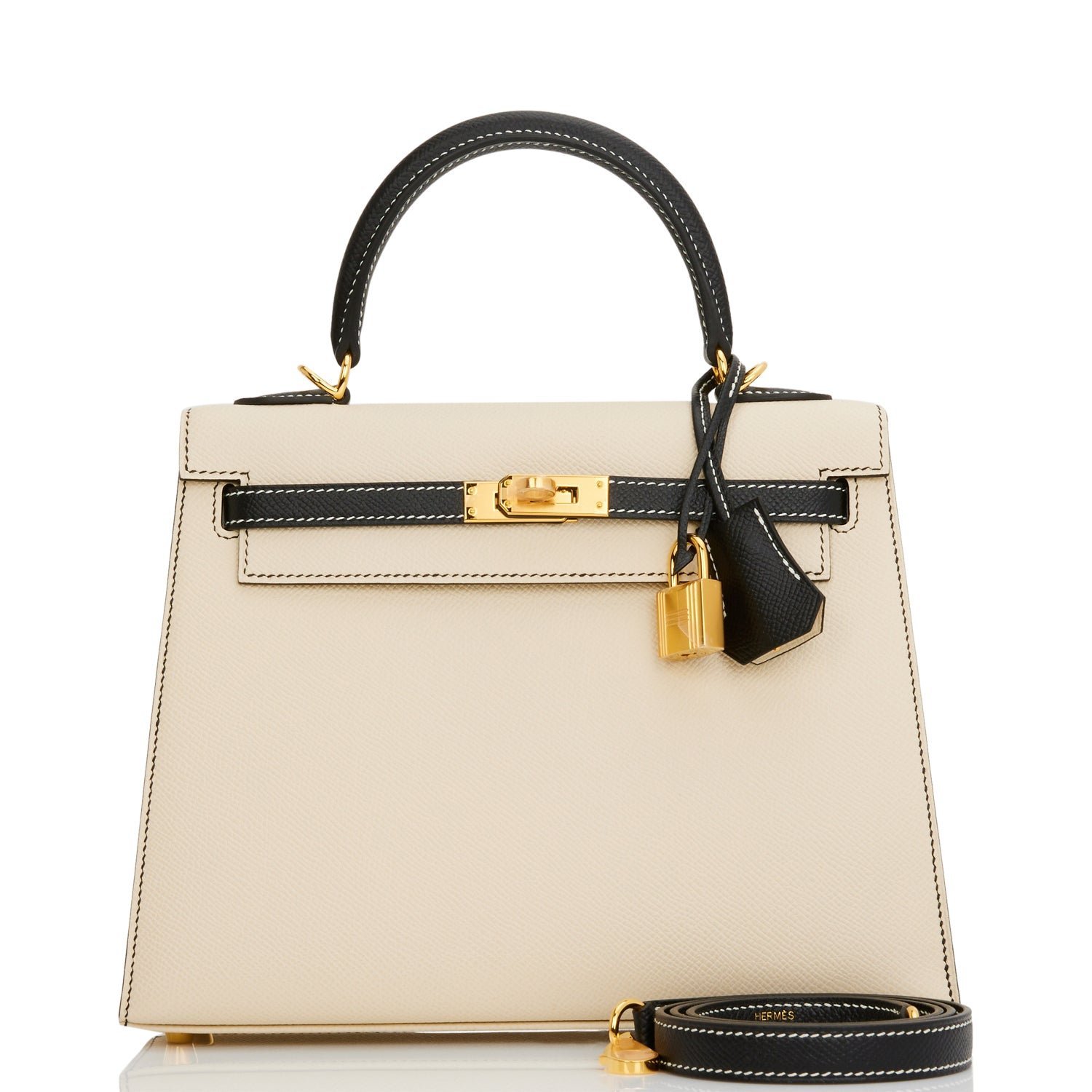 Hermes Special Order (HSS) Kelly Sellier 25 Nata and Black Epsom Gold Hardware