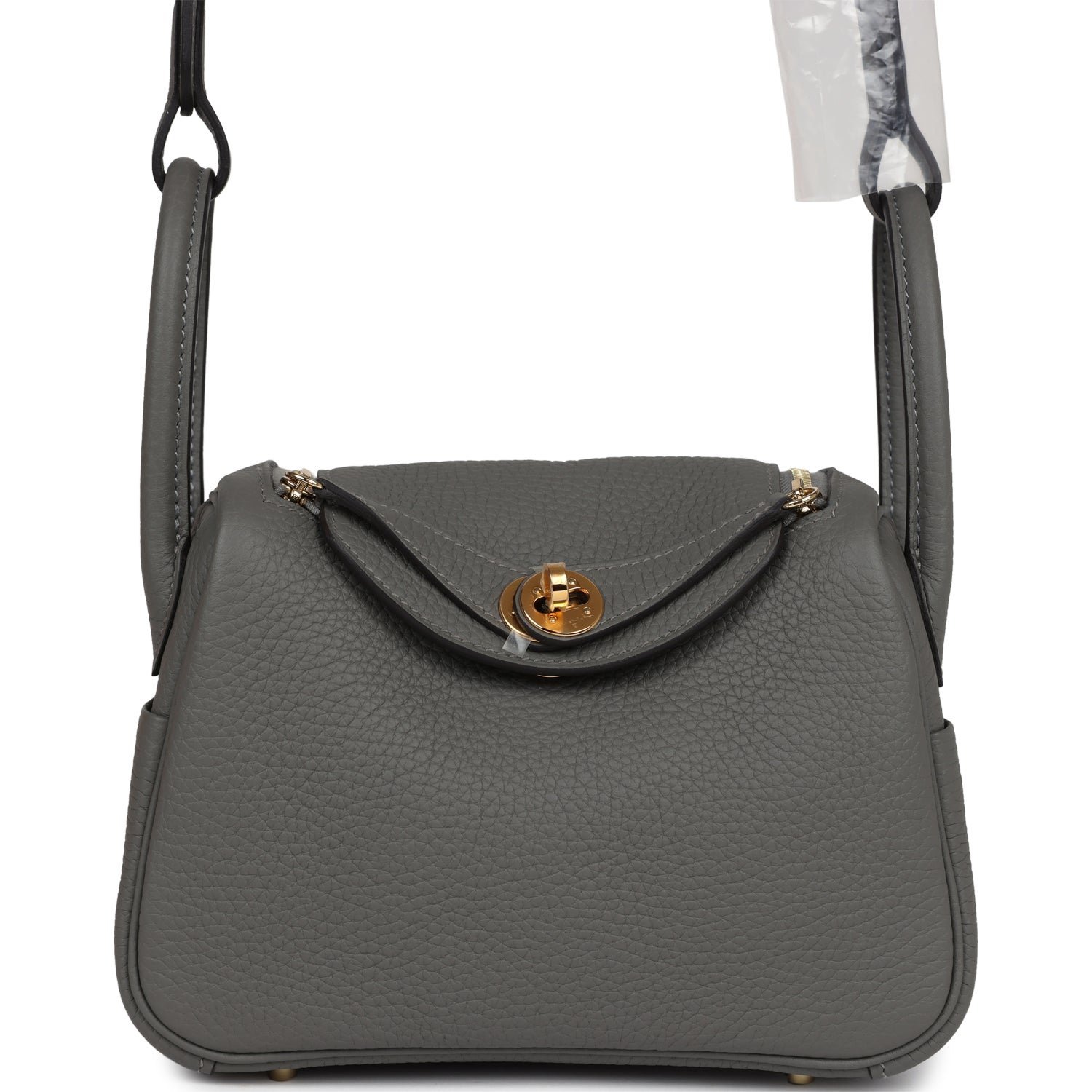 Hermes Mini Lindy Gris Meyer Clemence Gold Hardware