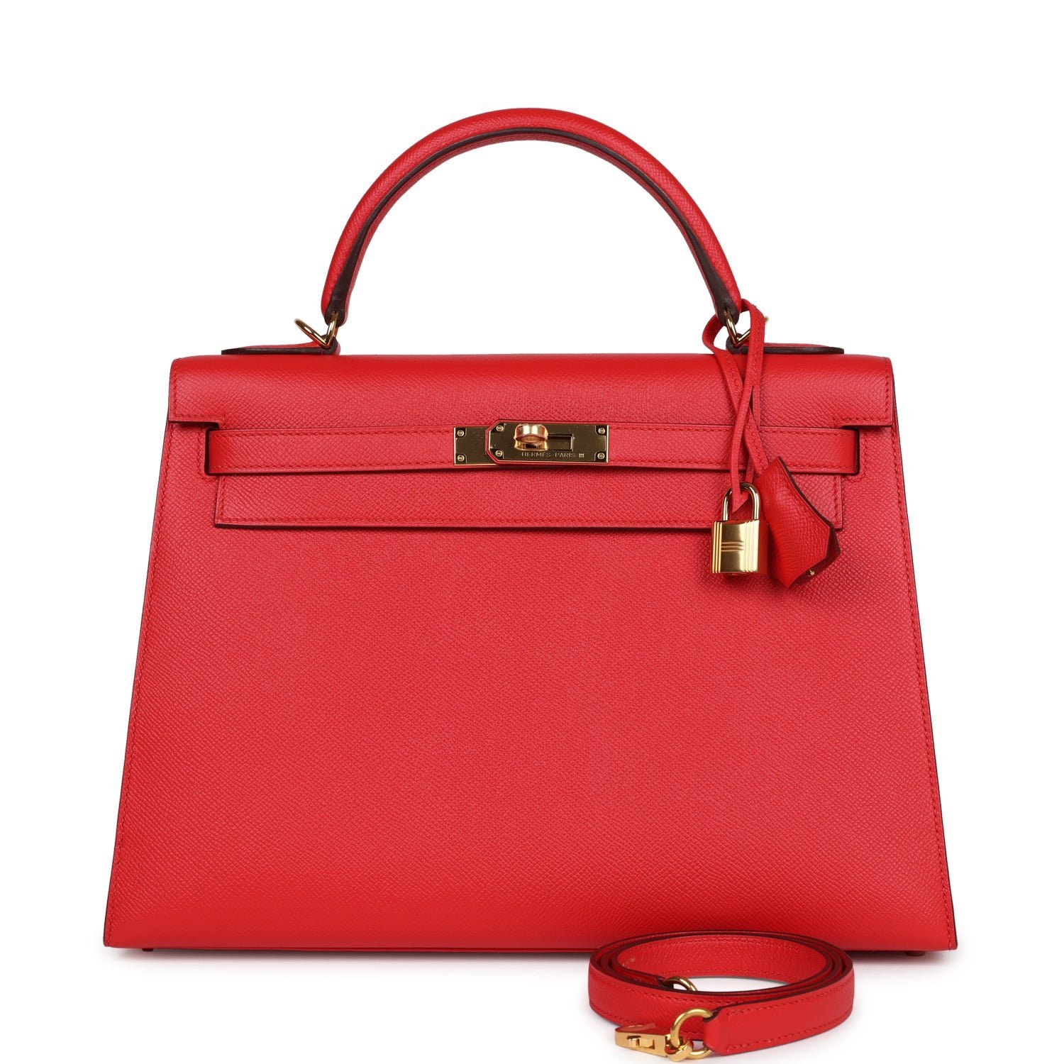 Hermes Kelly Sellier 32 Rouge Tomate Epsom Gold Hardware