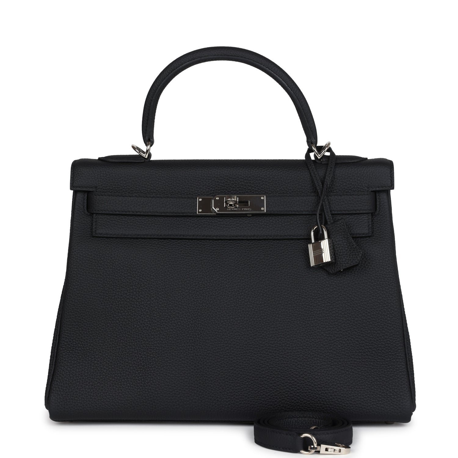 Pre-owned Hermes Kelly Retourne 32 Black Togo Palladium Hardware