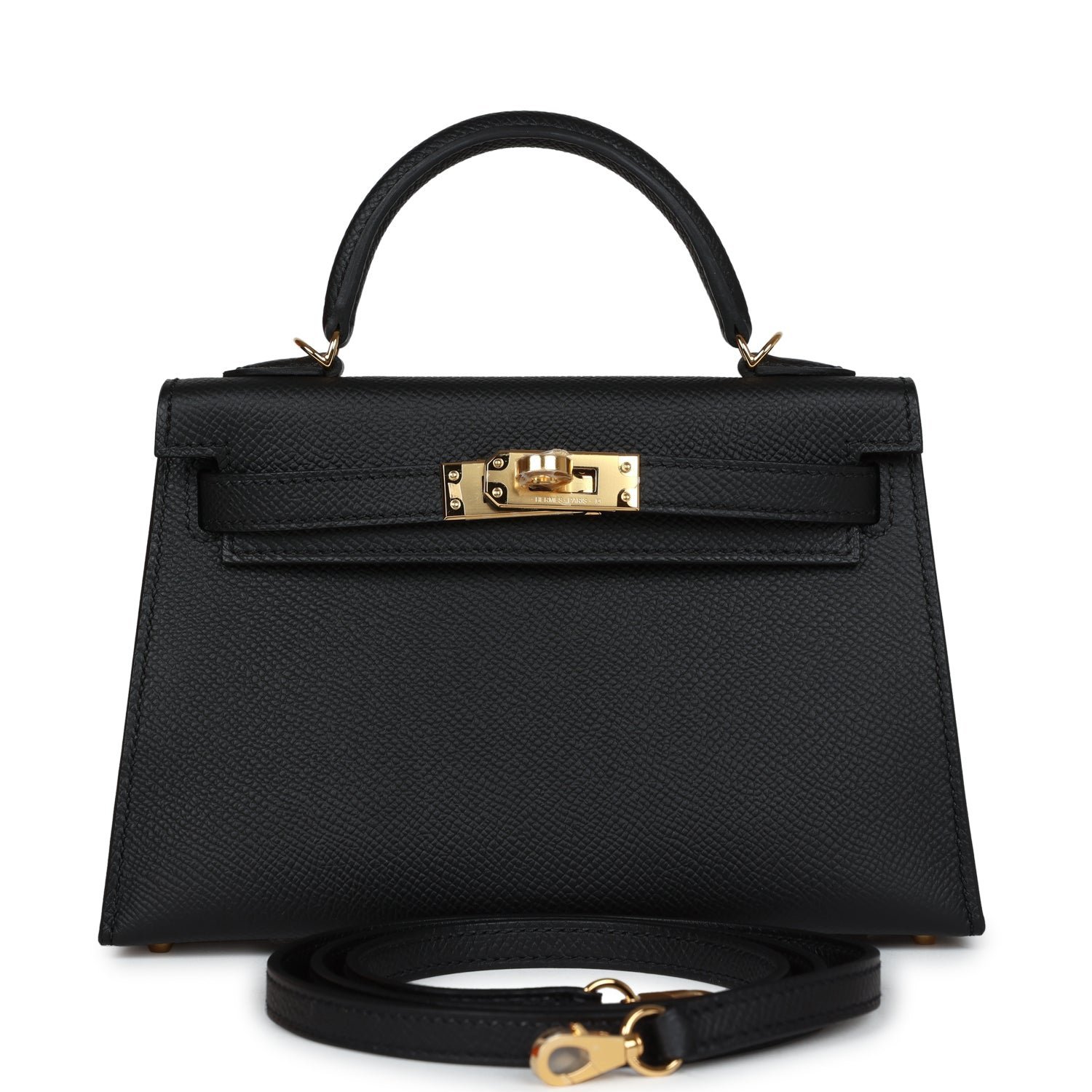 Hermes Kelly Sellier 20 Black Epsom Gold Hardware