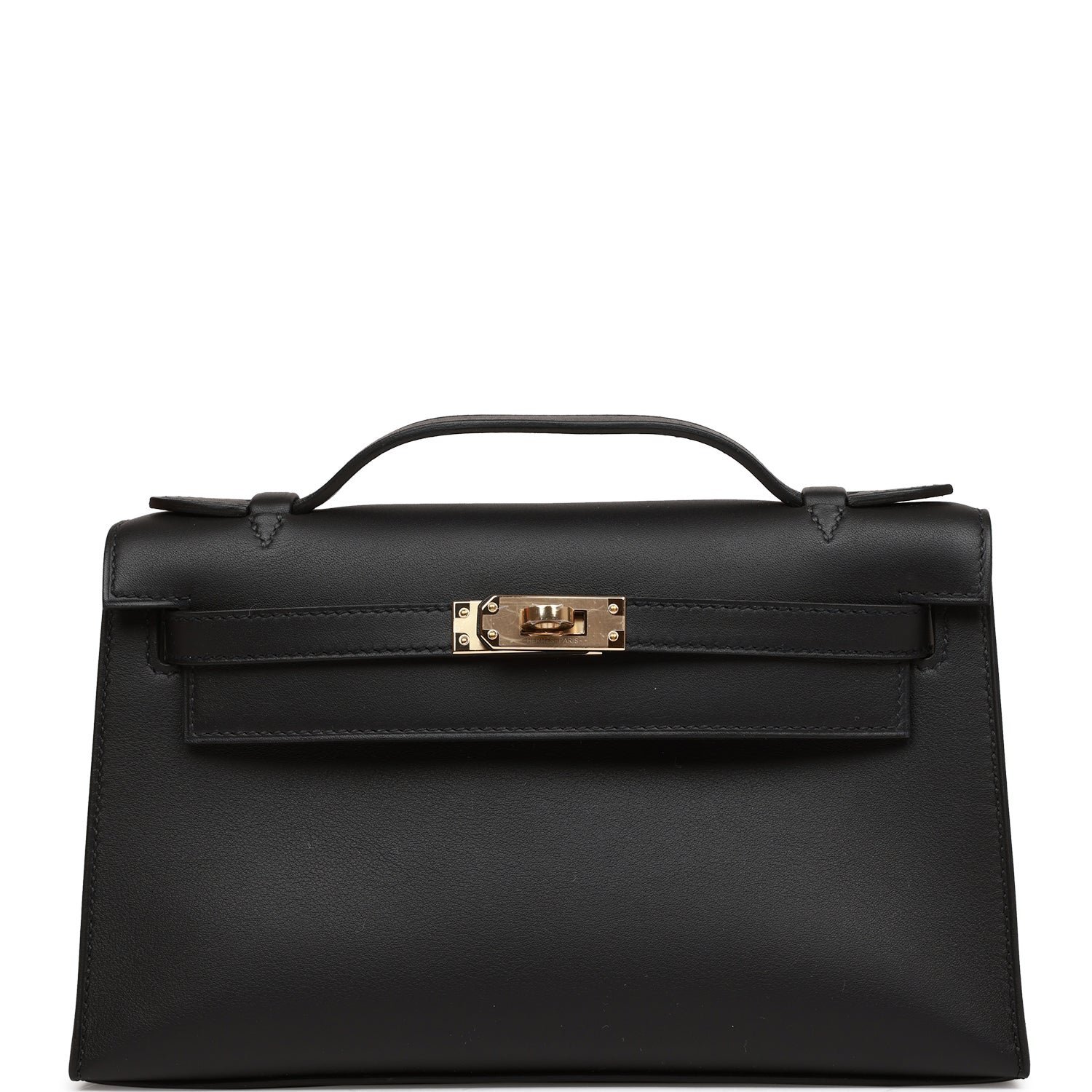 Hermes Kelly Pochette Black Swift Gold Hardware