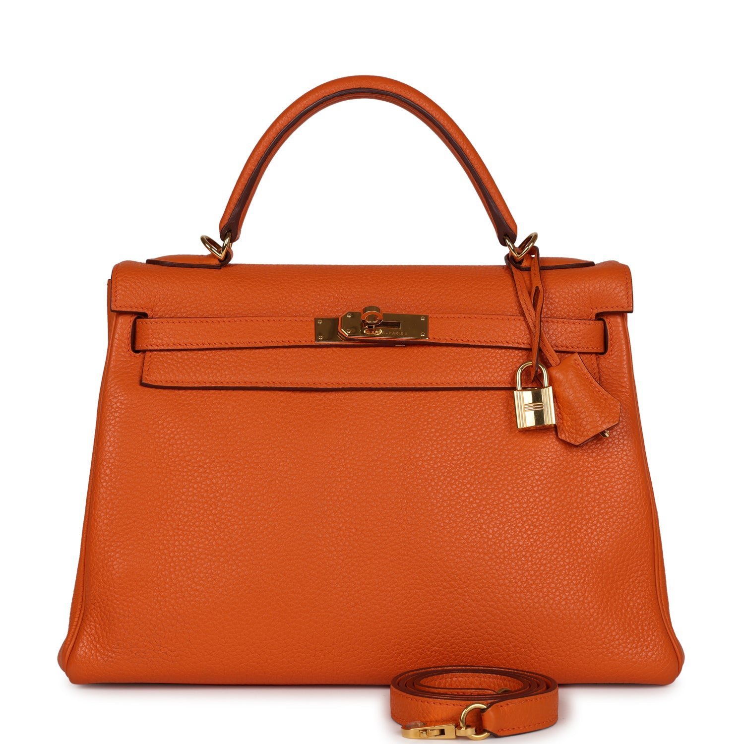 Hermes Kelly Retourne 28 Orange Togo Gold Hardware