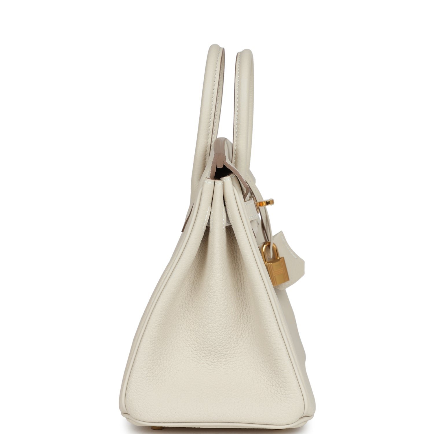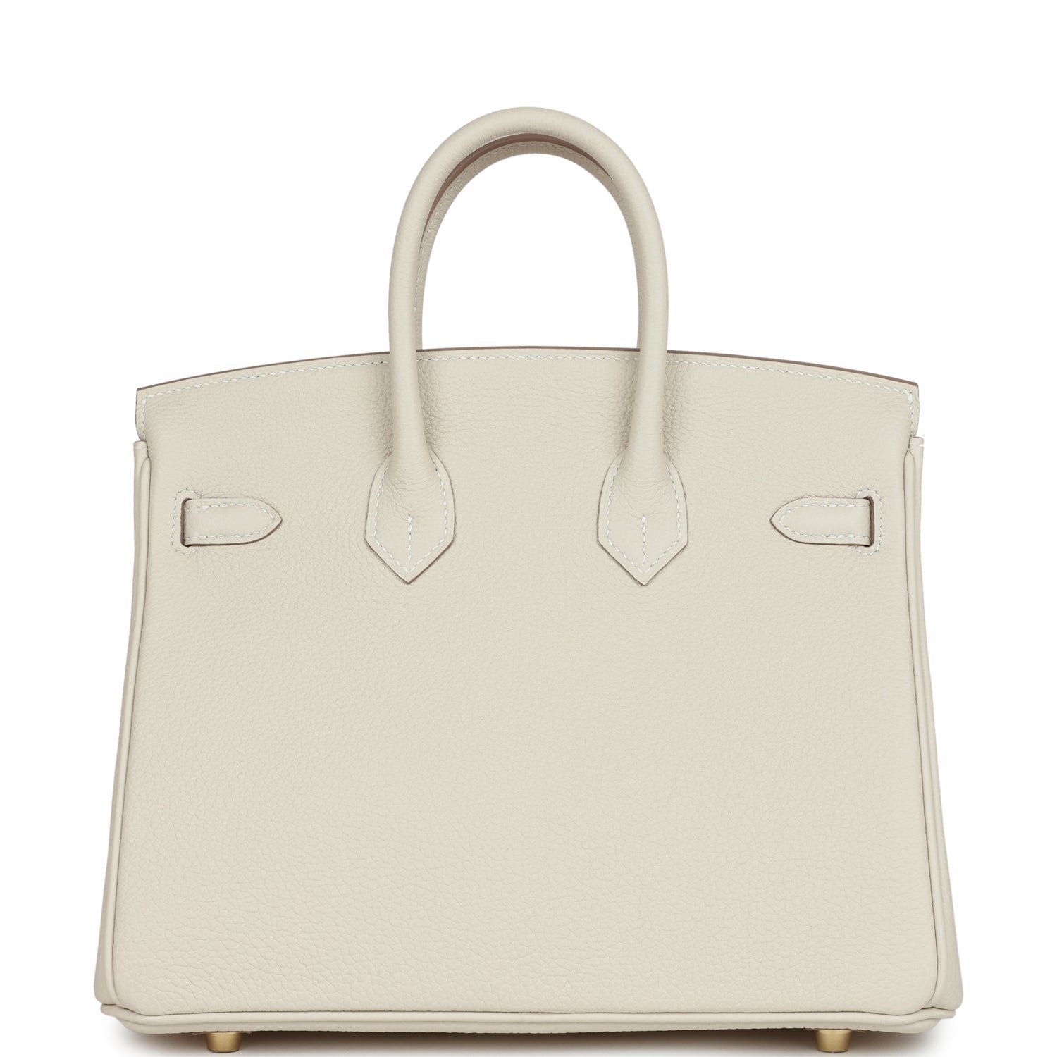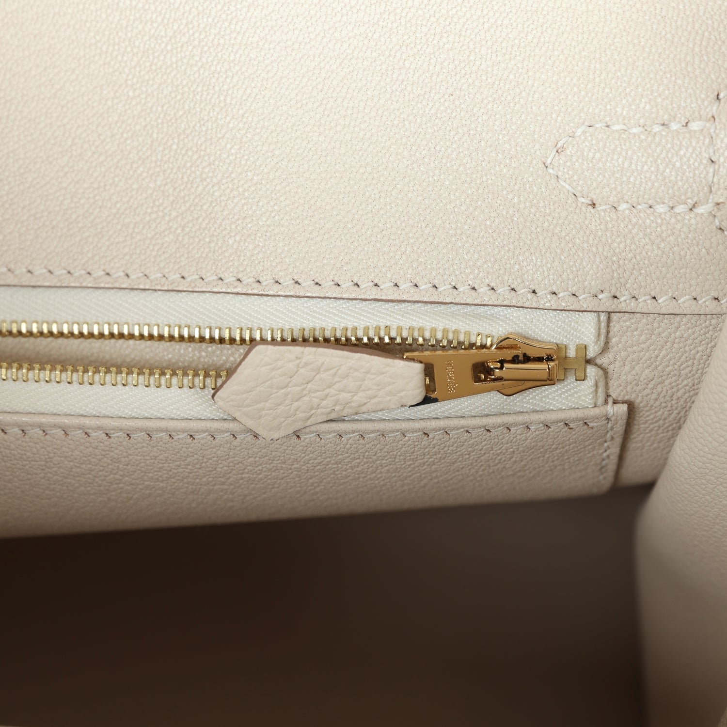 This Birkin is in Craie togo leather with gold hardware and has tonal stitching, two straps with front toggle closure, clochette with lock and two keys and double rolled handles.
