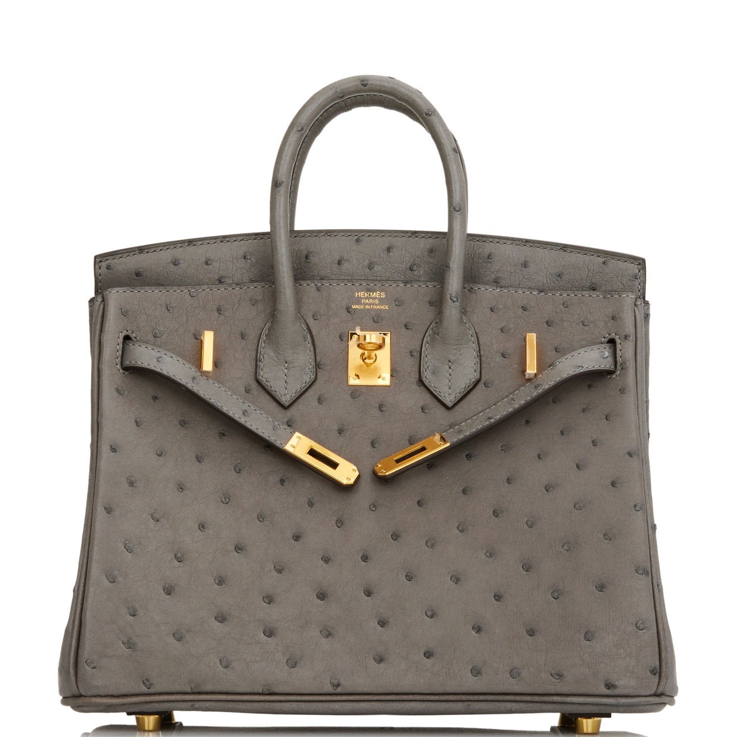 Hermes Birkin 25 Gris Meyer Ostrich Gold Hardware