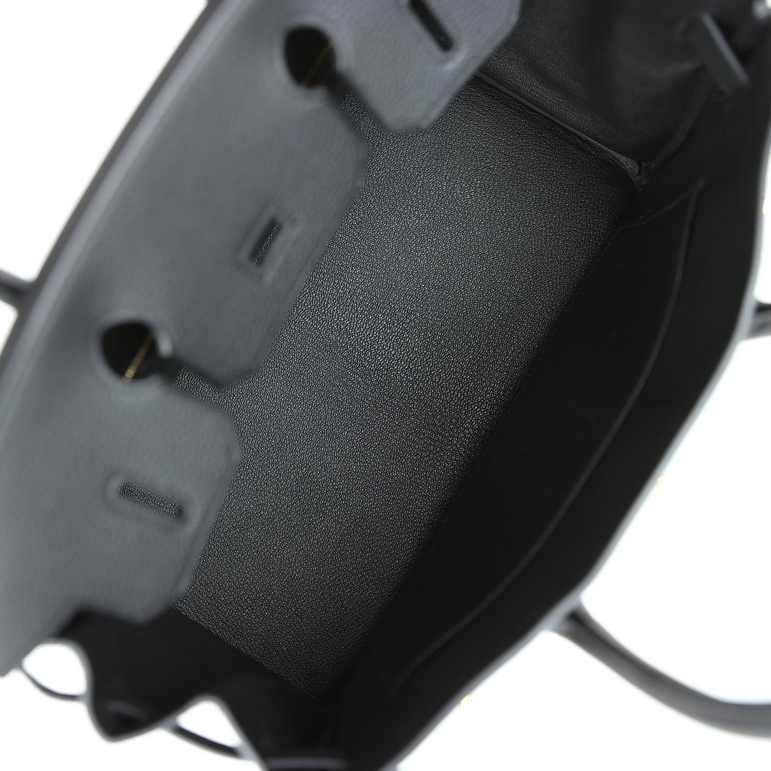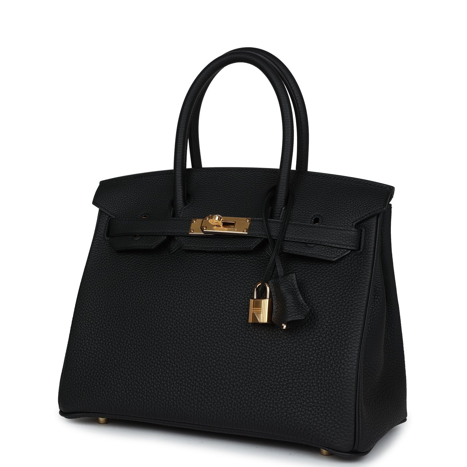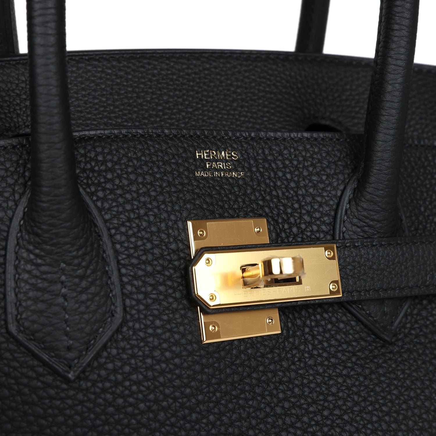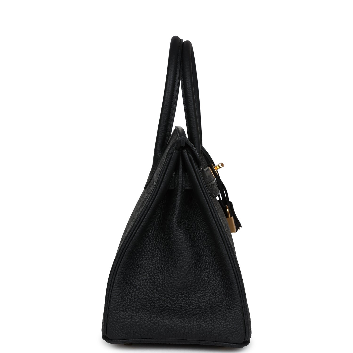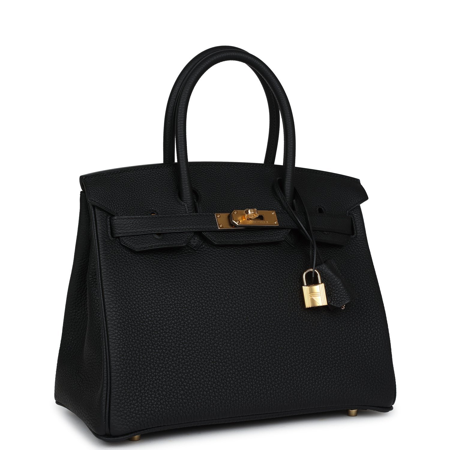 This Birkin is in Black togo leather with gold hardware and has tonal stitching, front flap, two straps with center toggle closure, clochette with lock and two keys, and double rolled handles.