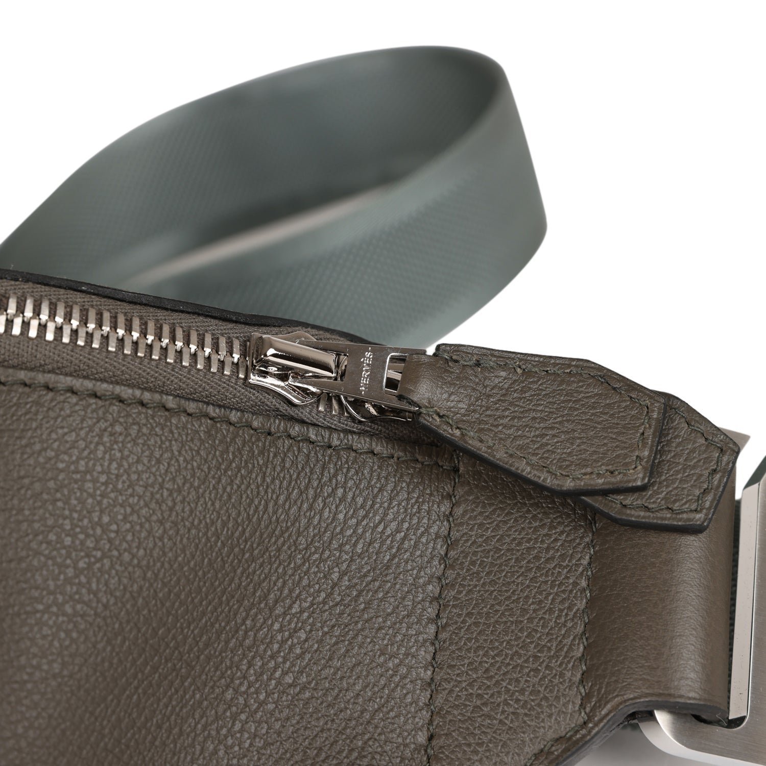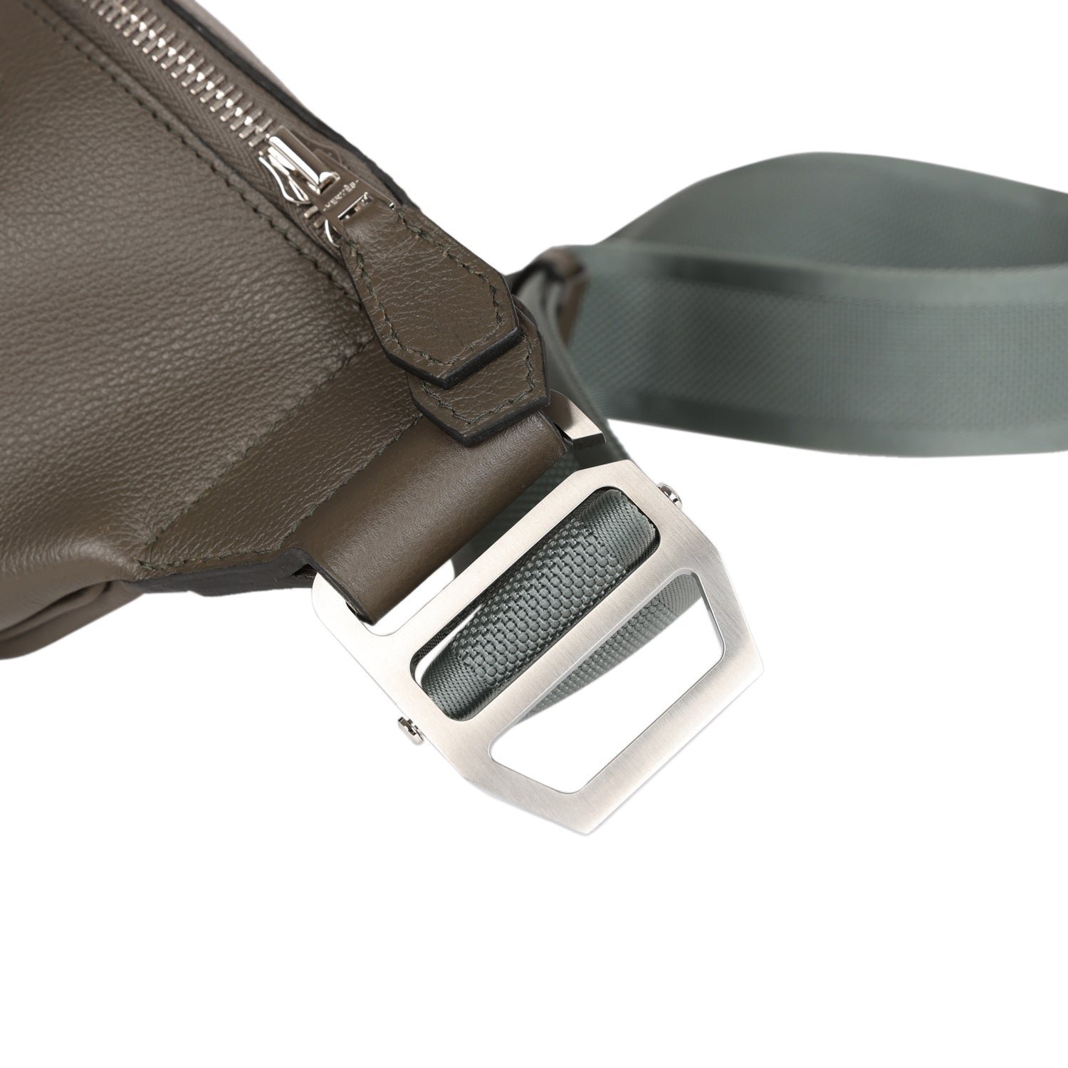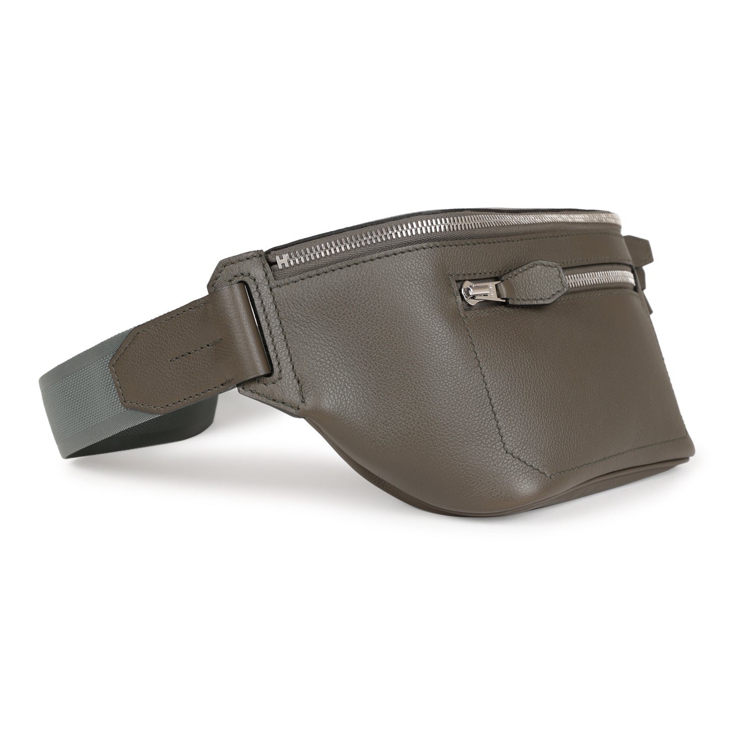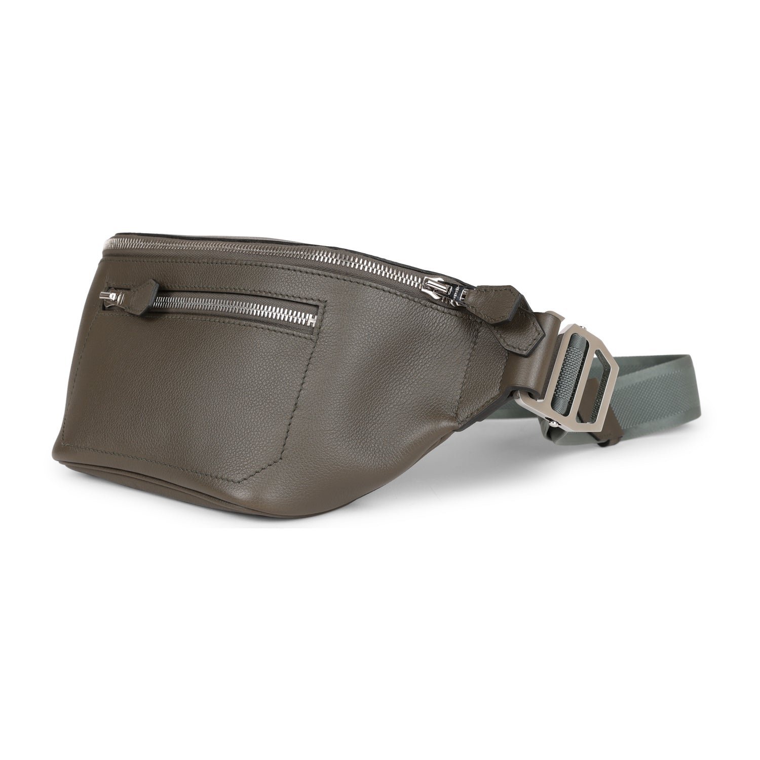 This Cityslide Cross PM is in Vert De Gris Taurillon Cristobal leather with Palladium Hardware, bumbag style cross body bag, tonal stitching, and a nylon adjustable strap.