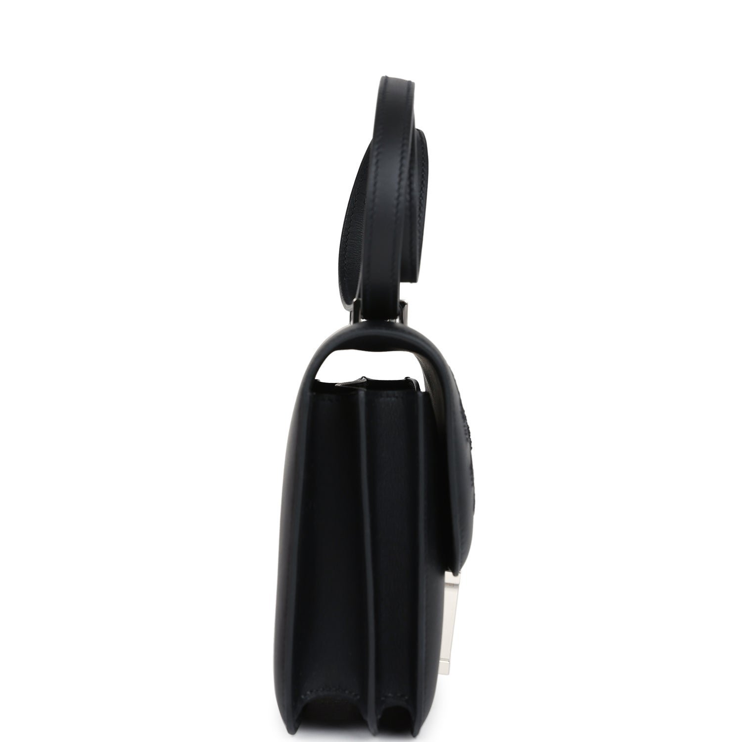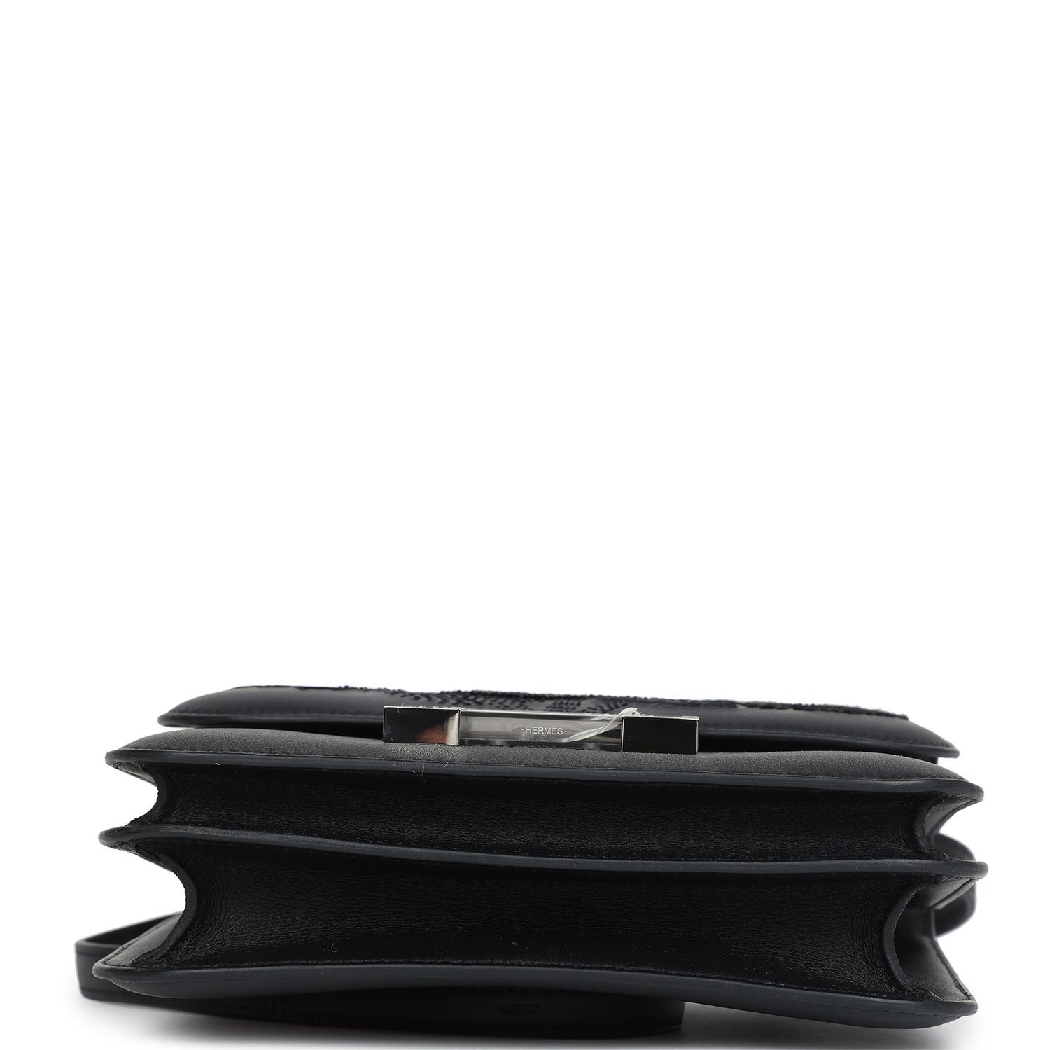 This Limited Edition “Dancing Flowers” Constance is in Black swift calfskin leather with palladium hardware, featuring tonal stitching, three embroidered and beaded flowers stitched on the front flap, metal “H” snap lock closure and adjustable shoulder strap.