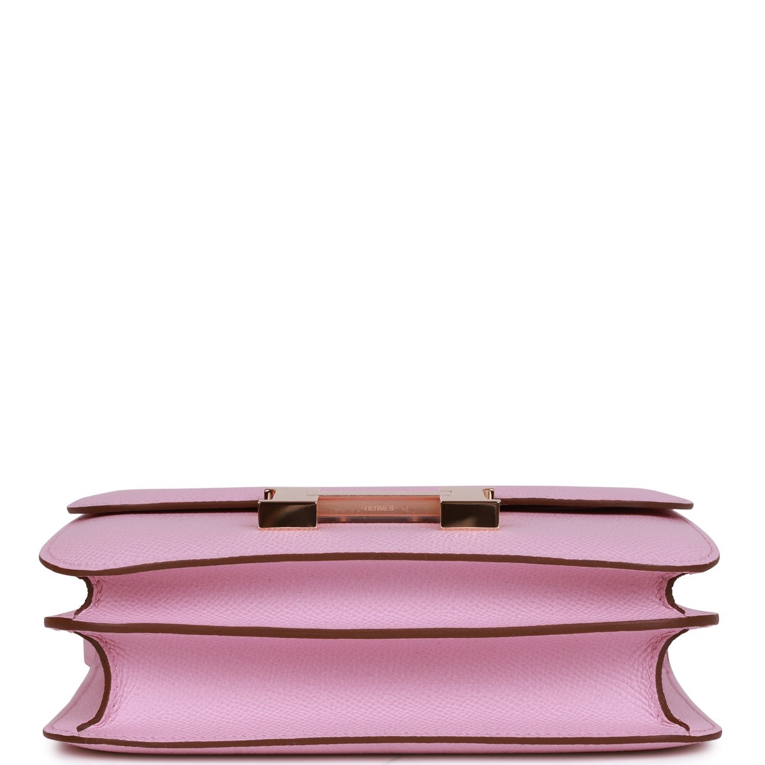 This Constance is in Mauve Sylvestre epsom leather with rose gold hardware and has tonal stitching, a metal “H” snap lock closure and adjustable shoulder strap.