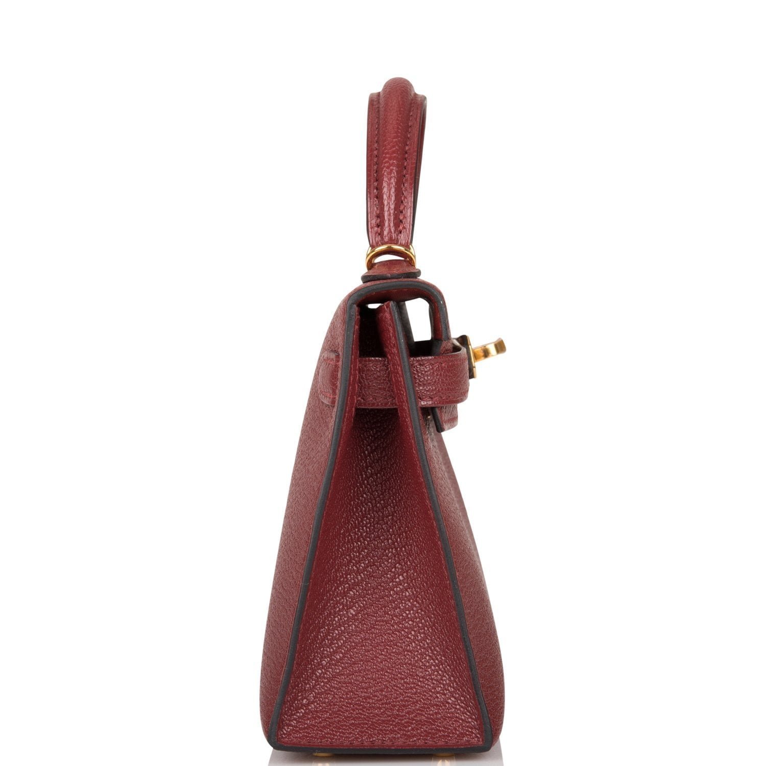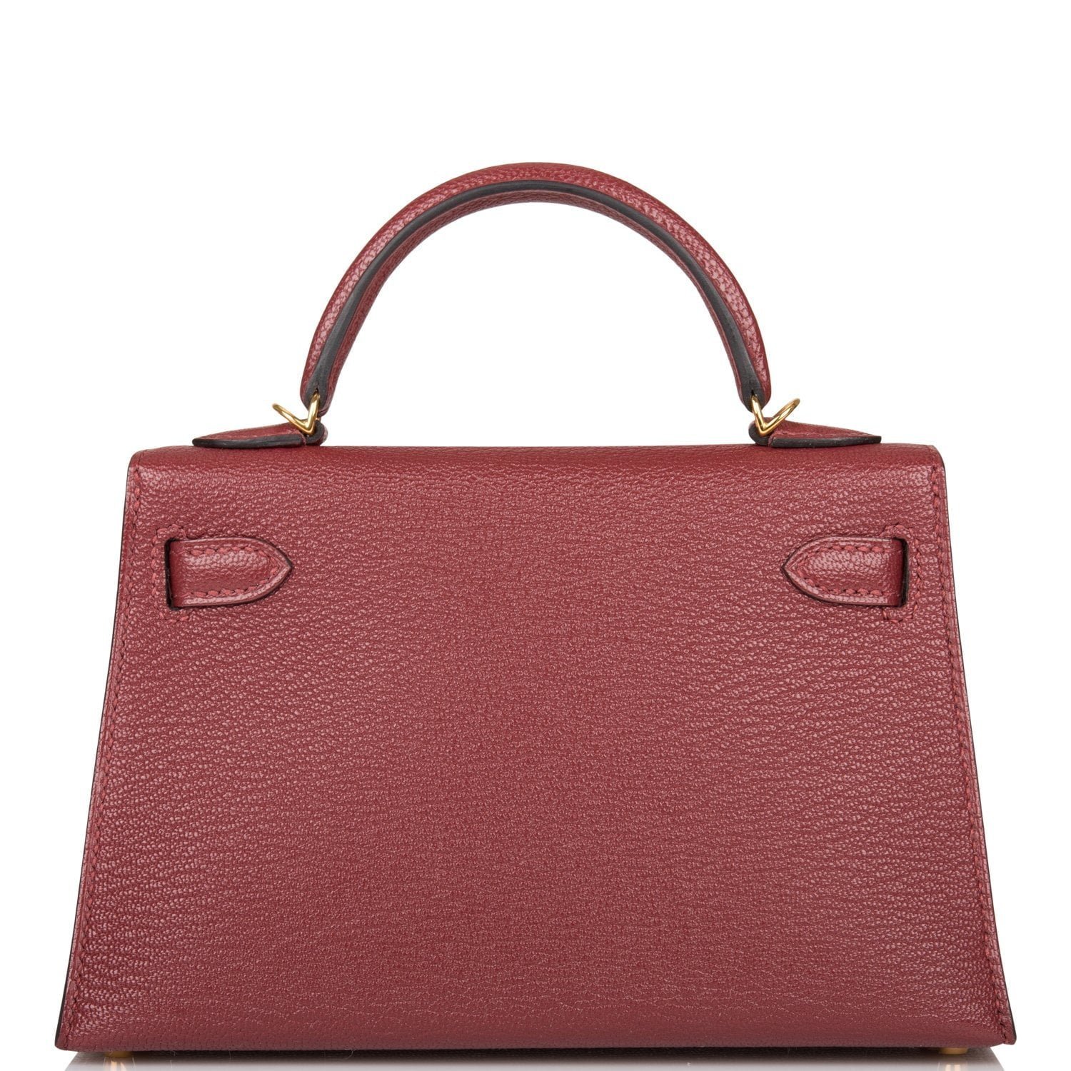 This Kelly, in the Sellier style, is in Rouge H chevre leather with gold hardware and has tonal stitching, two straps with front toggle closure, single rolled handle and removable shoulder strap.