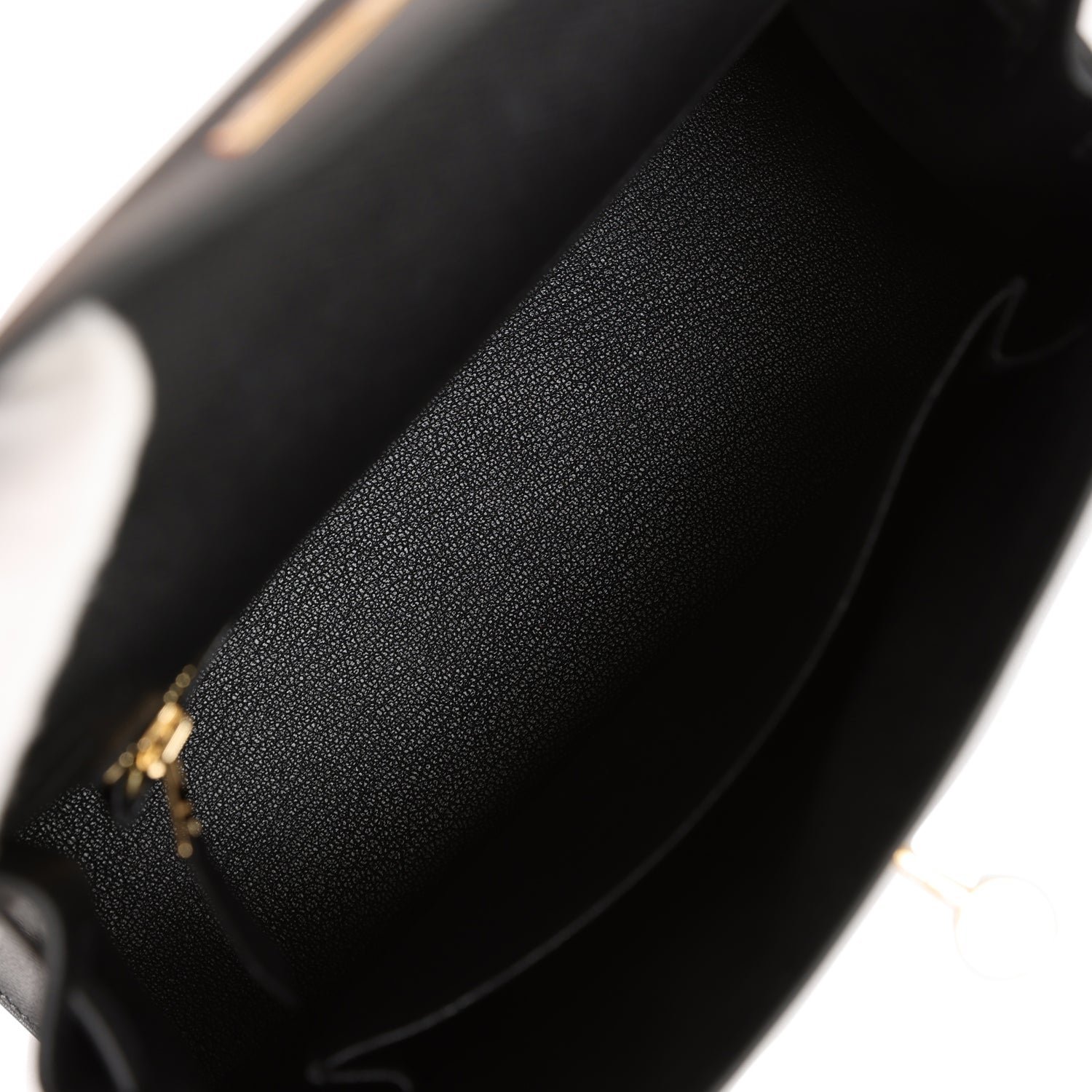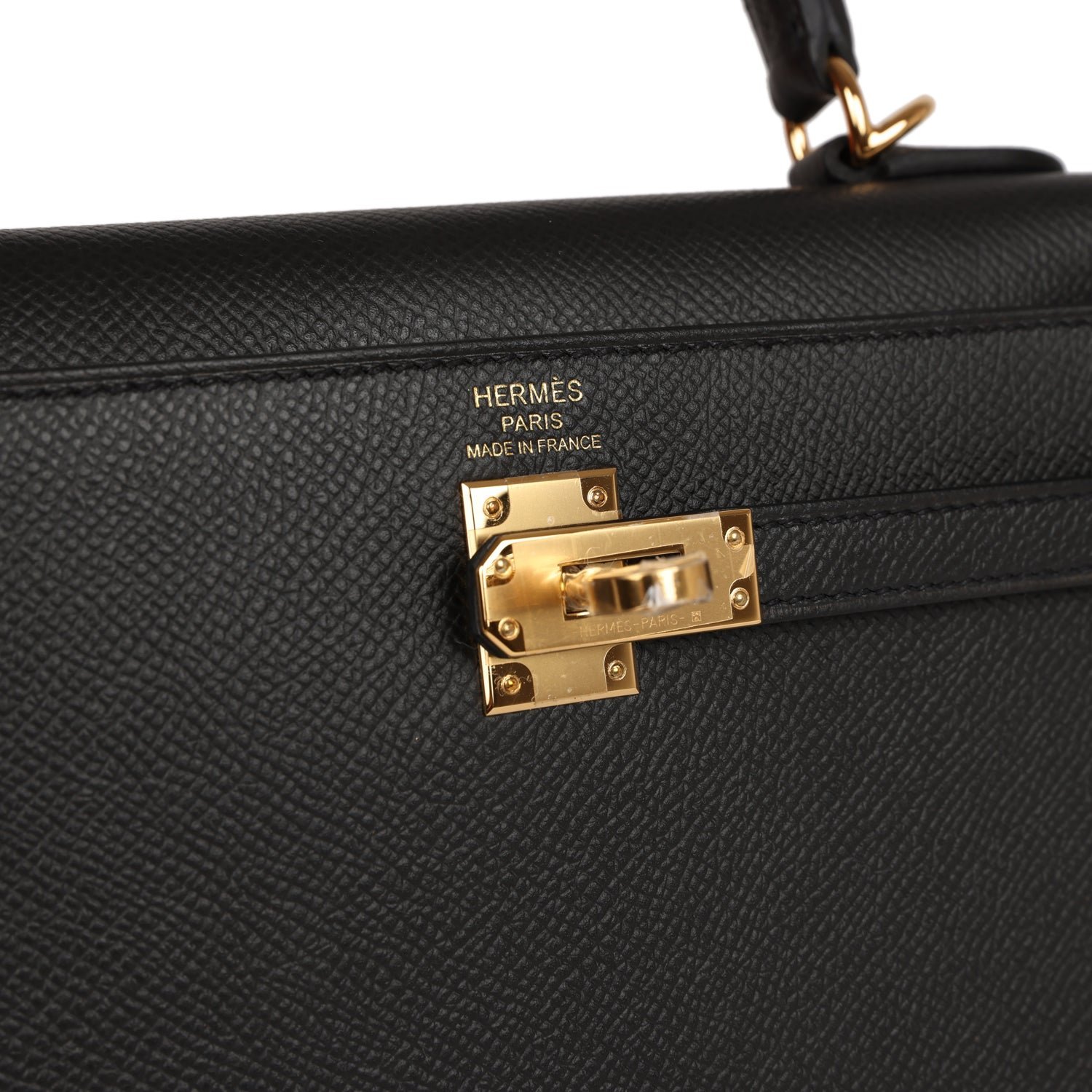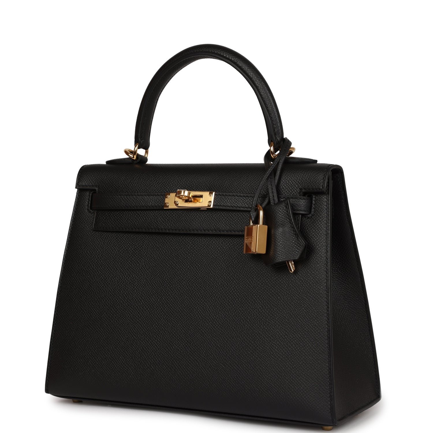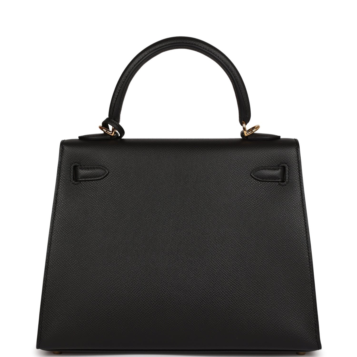 Hermes Kelly Sellier 25 Black Epsom Gold Hardware