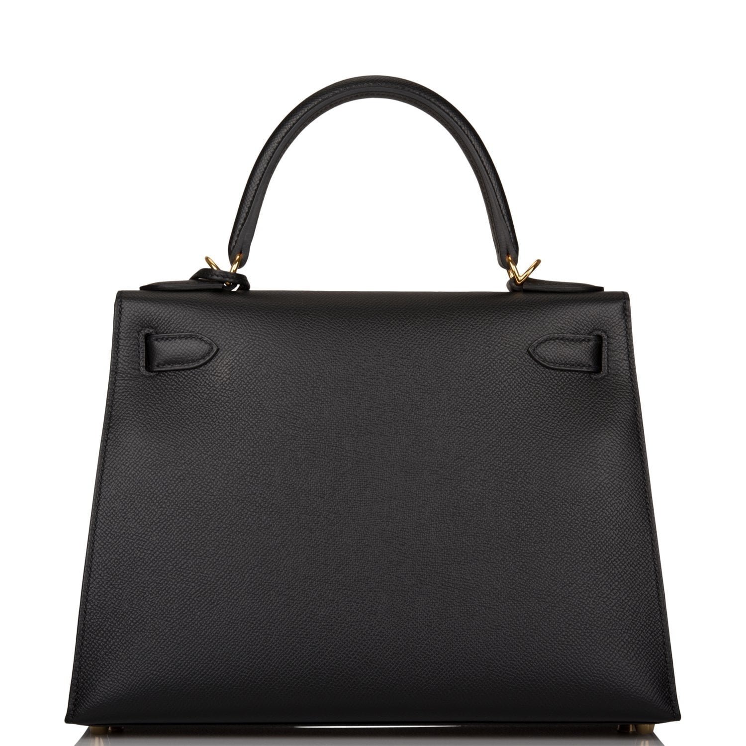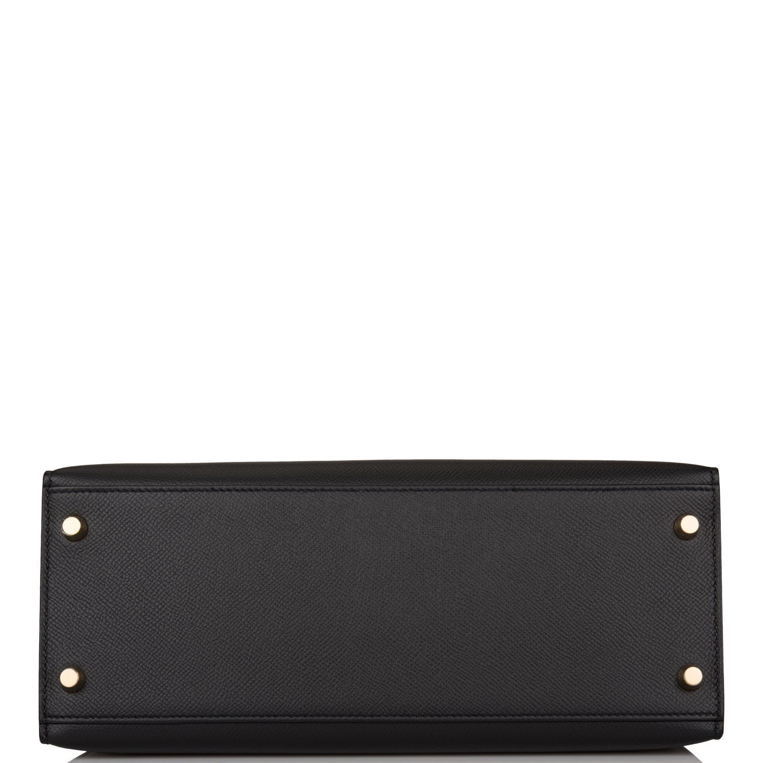 This Kelly Sellier is of black epsom leather with gold hardware and has tonal stitching, a front toggle closure, a clochette with lock and two keys, a single rolled handle and an optional shoulder strap.