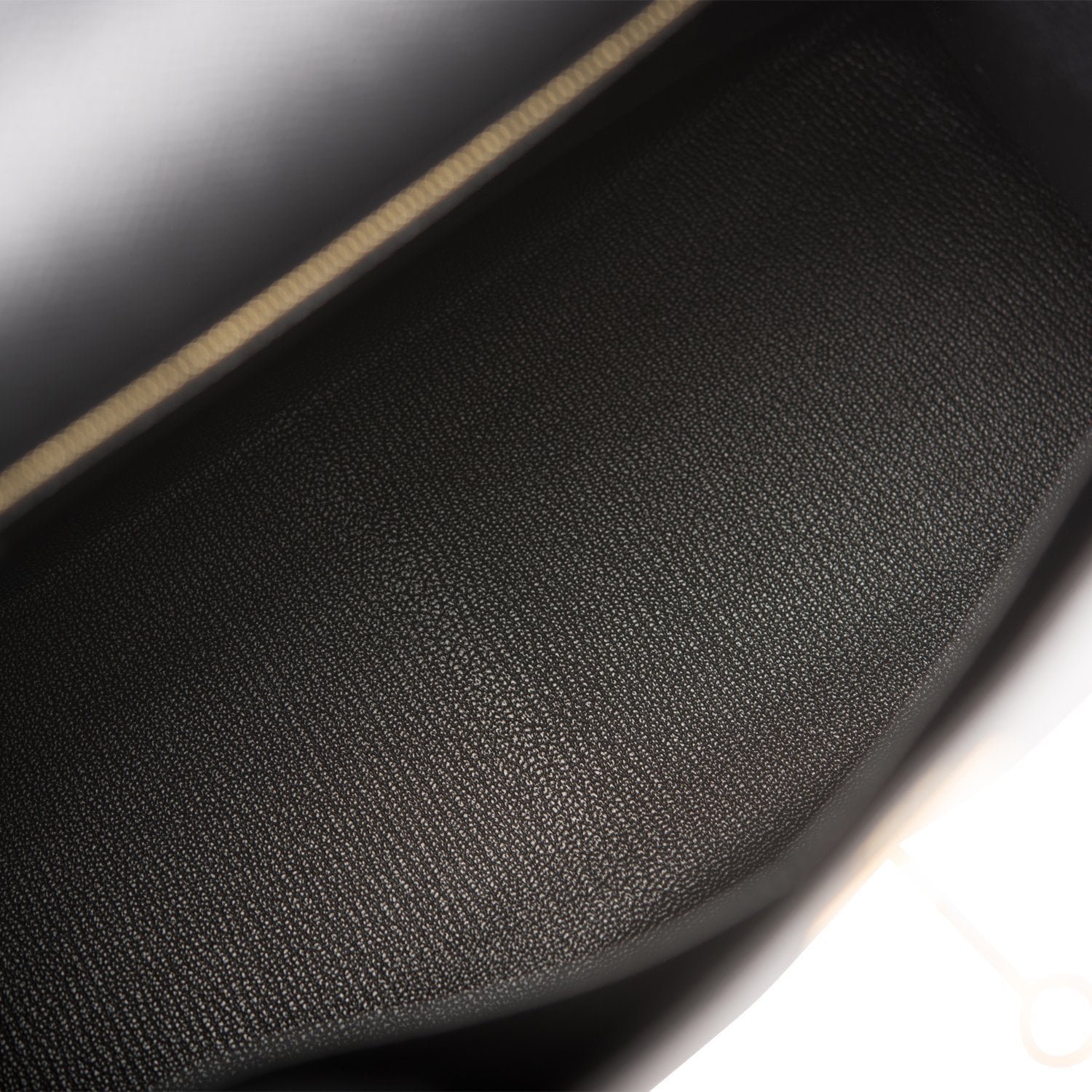 The interior is lined with black chevre leather and has one zip pocket with an Hermes engraved pull and two open pockets on the opposite side.