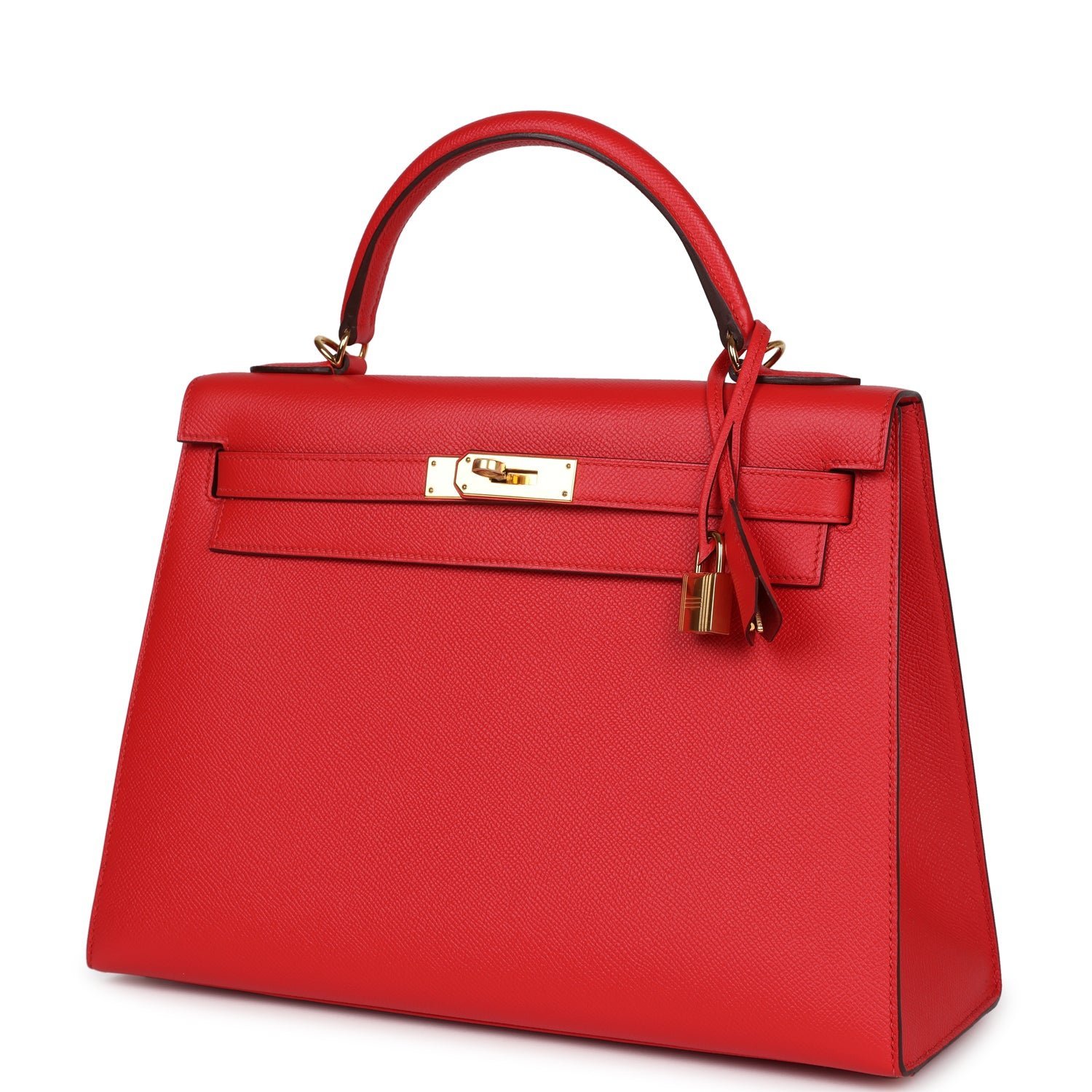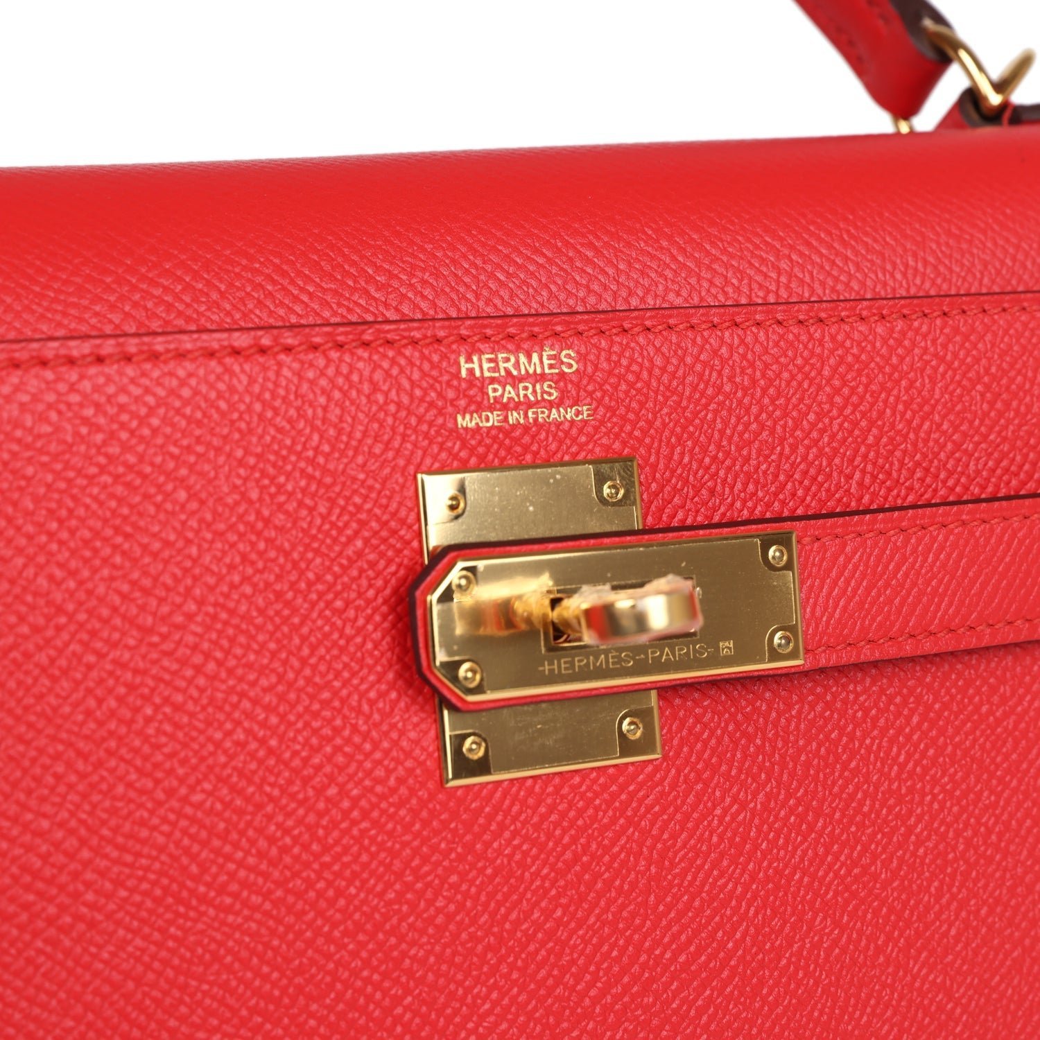 Hermes Kelly Sellier 32 Rouge Tomate Epsom Gold Hardware