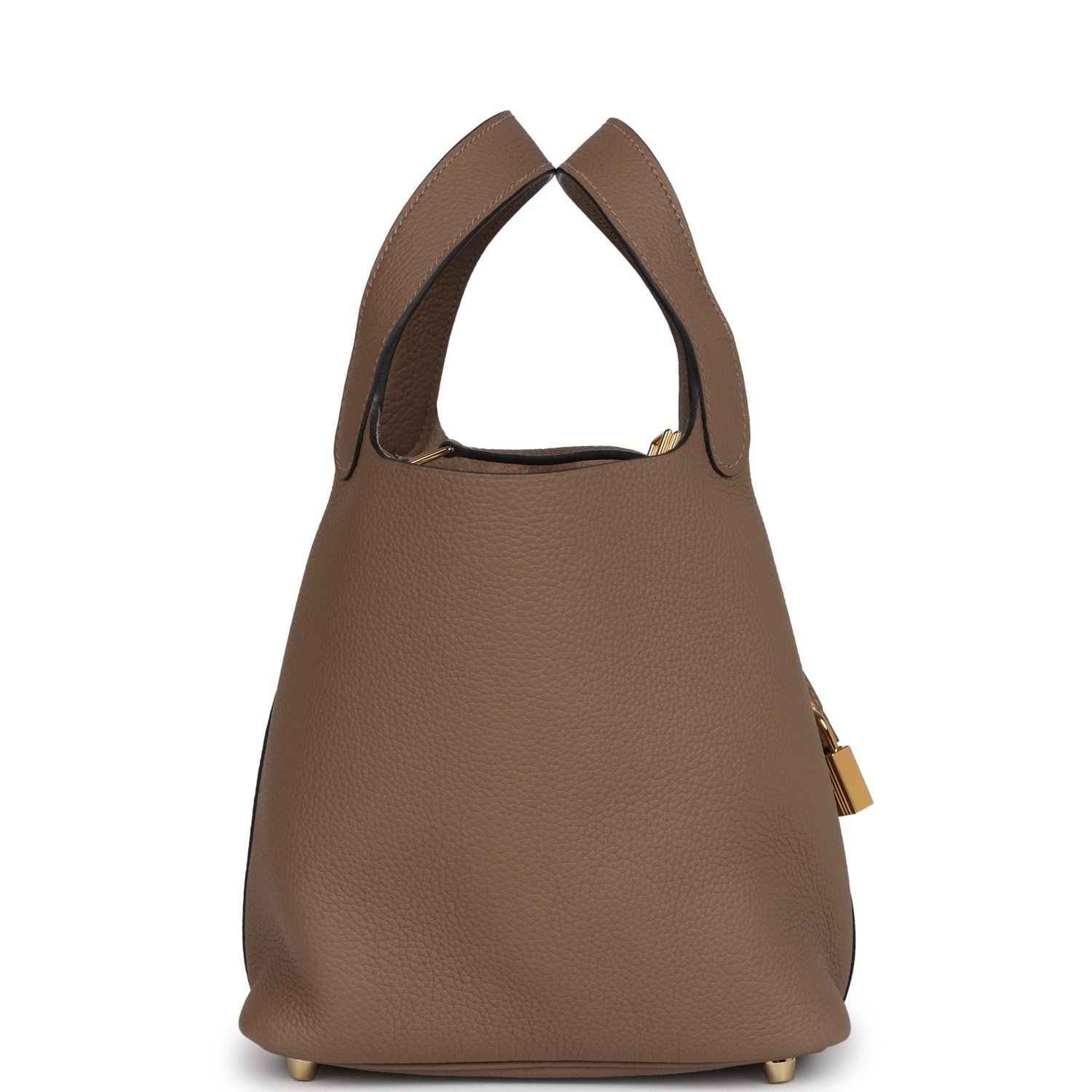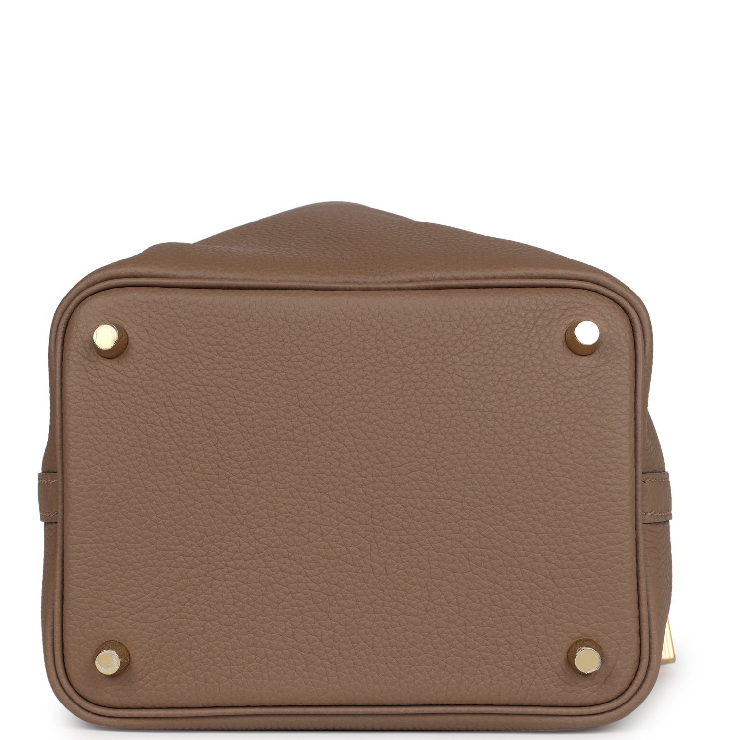 This Hermes Picotin Lock 18 is in Beige De Weimar Maurice leather with gold hardware and has tonal stitching with two top handles, lock and 2 keys.