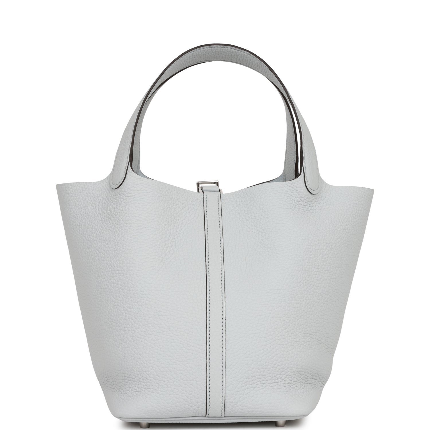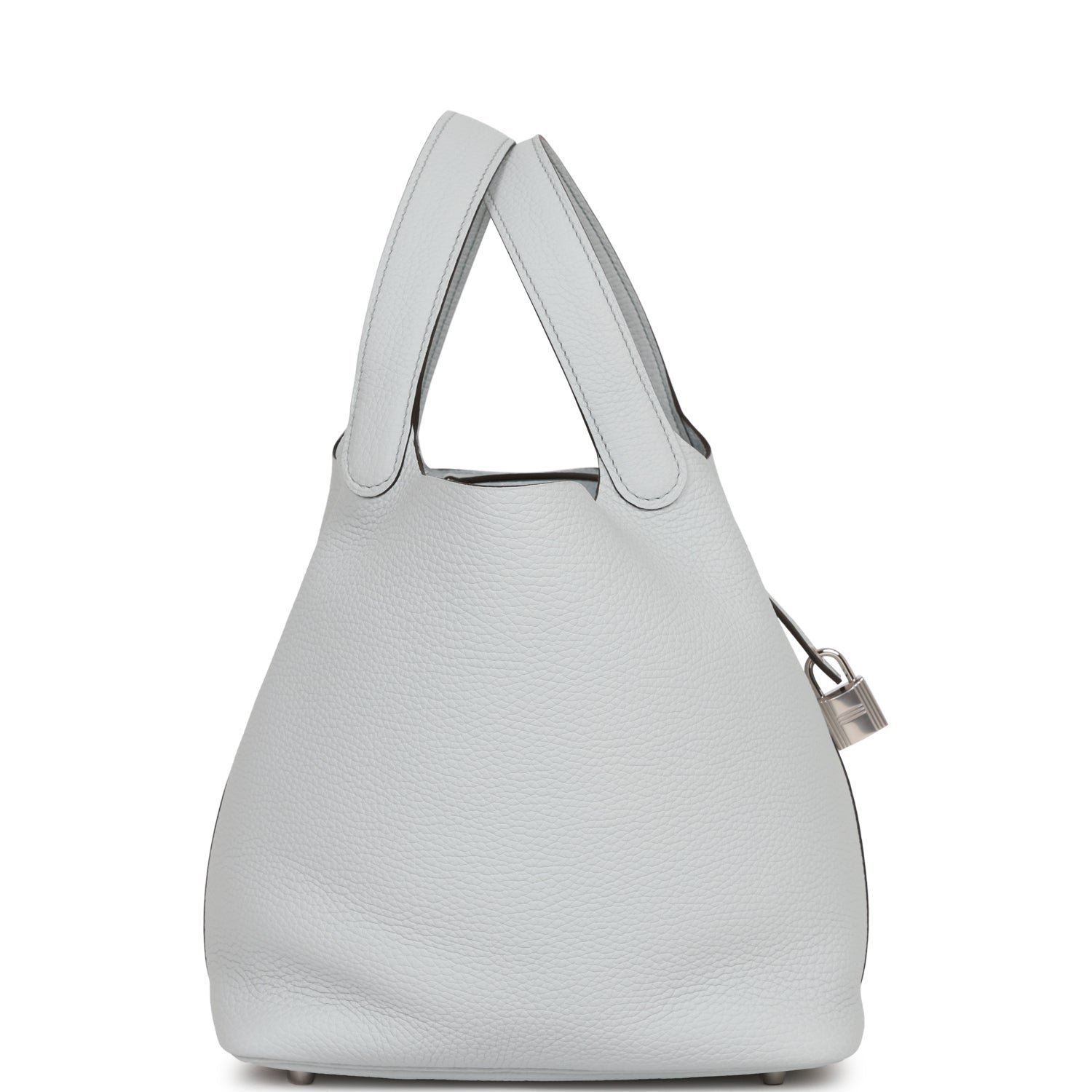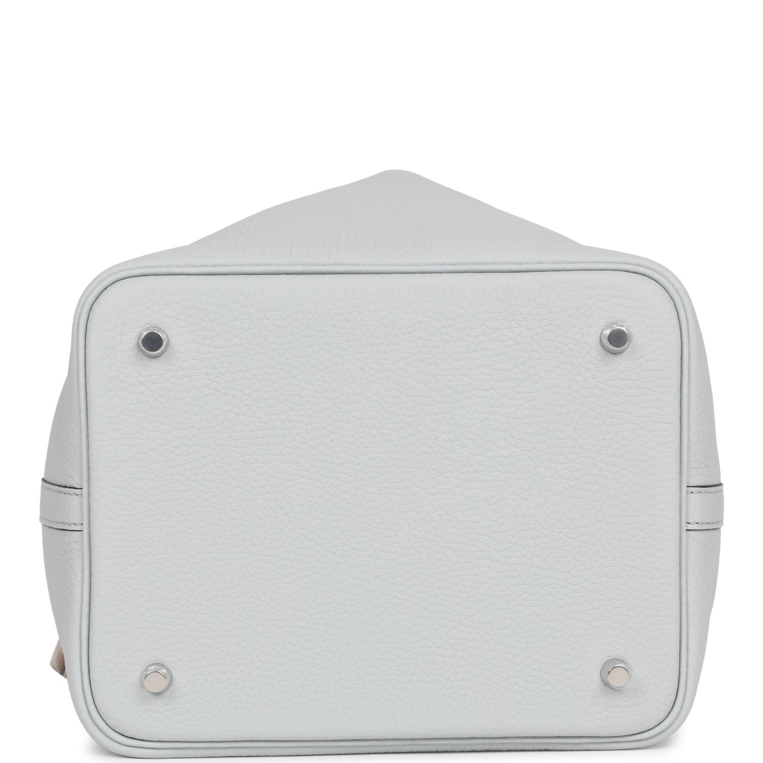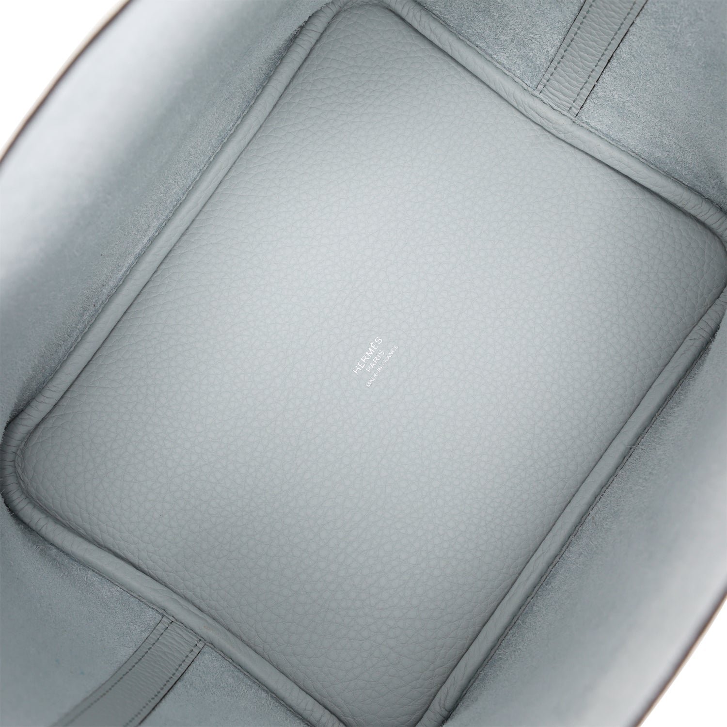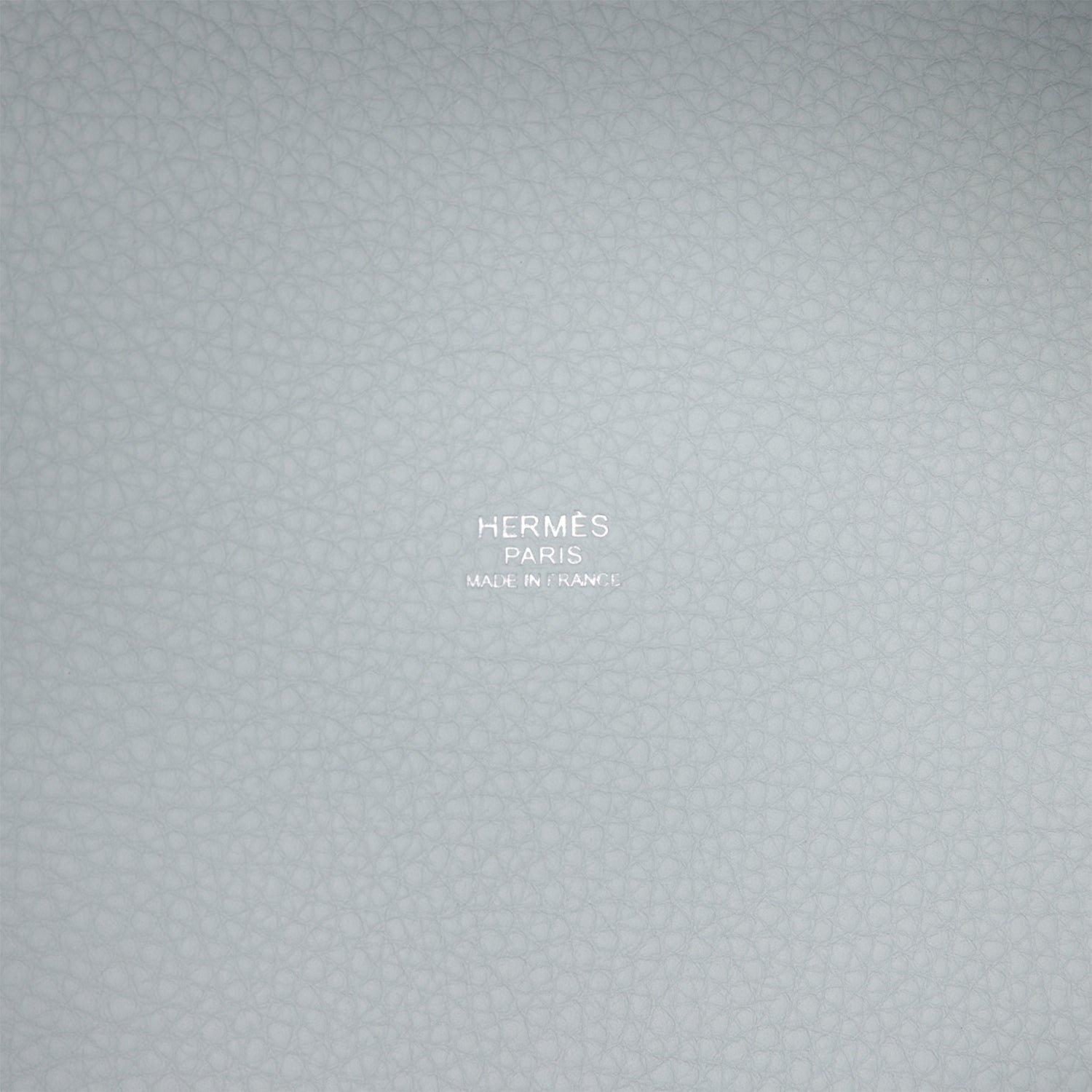 This Picotin is in Bleu Pale clemence leather with palladium hardware and has tonal stitching with two top handles.