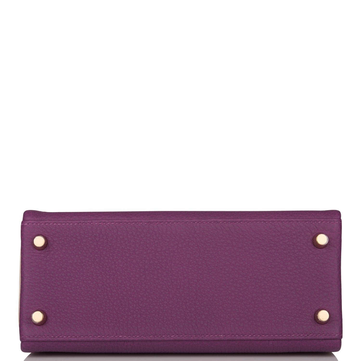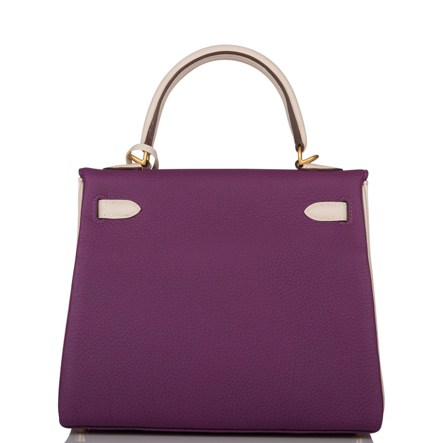 This Special Order Kelly, in the Retourne style, is in Anemone and Craie togo leather with brushed gold hardware and has tonal stitching, front flap, two straps with center toggle closure, clochette with lock and two keys, single rolled handle and removable shoulder strap.
