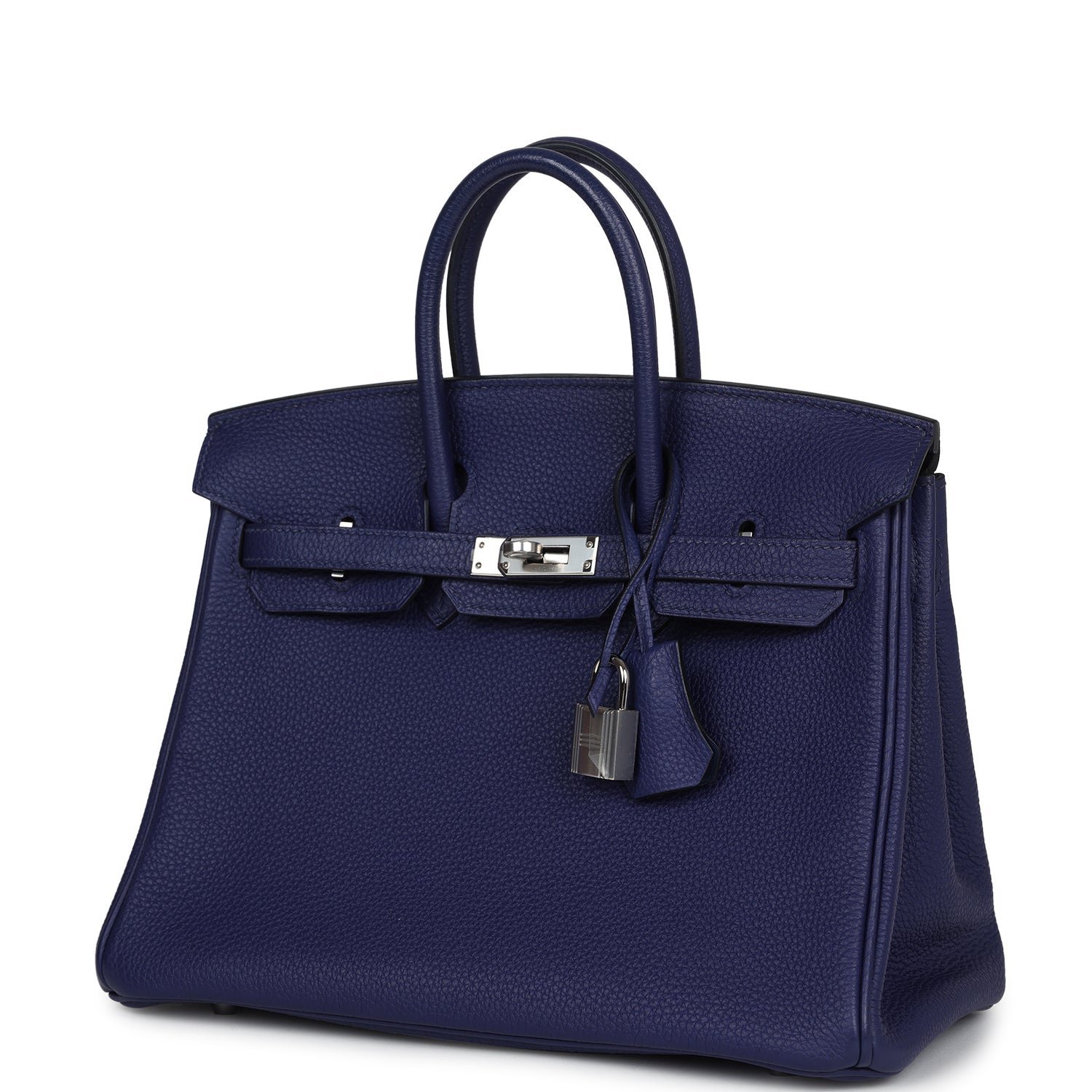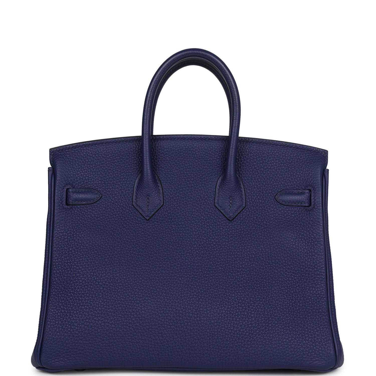 Pre-owned Hermes Birkin 25 Bleu Encre Togo Palladium Hardware
