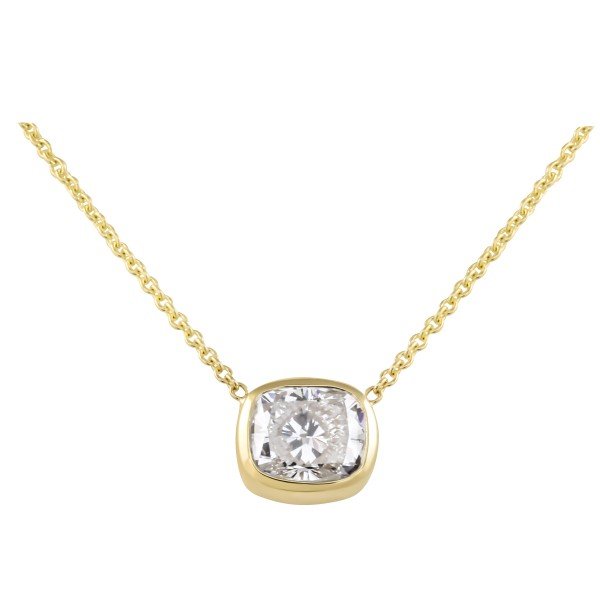 2 carat Cushion Cut Lab Diamond Bezel Set Pendant