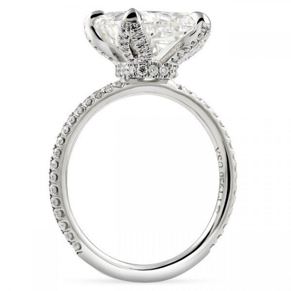 4 carat Cushion Cut Diamond Lotus Prong Engagement Ring